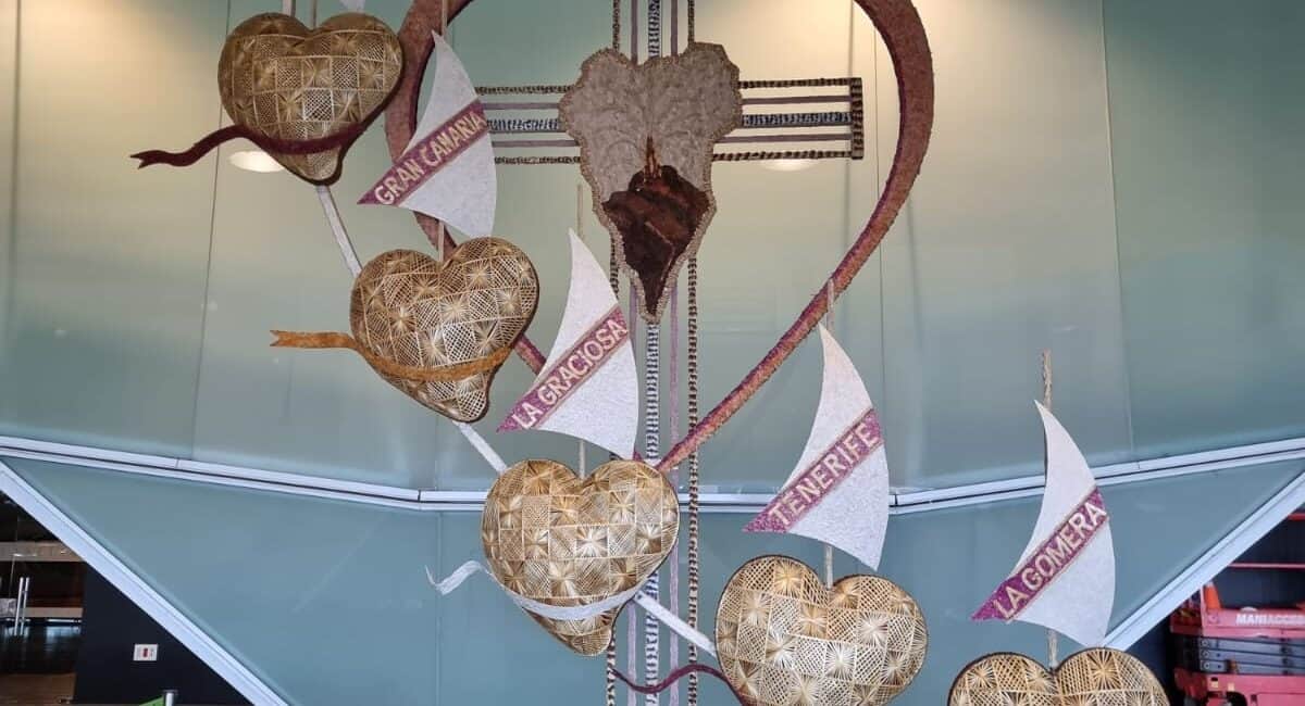 En el día de hoy, se ha procedido a la instalación en la zona de salidas del aeropuerto de La Palma de un nuevo arco del Corpus Christi de Villa de Mazo, más concretamente una de las dos estructuras que fueron elaboradas por los vecinos y vecinas del municipio en junio de 2022, para su traslado y participación en el Corpus Christi de la Villa de La Orotava, en donde nuestro municipio fue invitado a participar en el bonito homenaje que le brindaron a nuestra isla después de la erupción del Volcán Tajogaite.