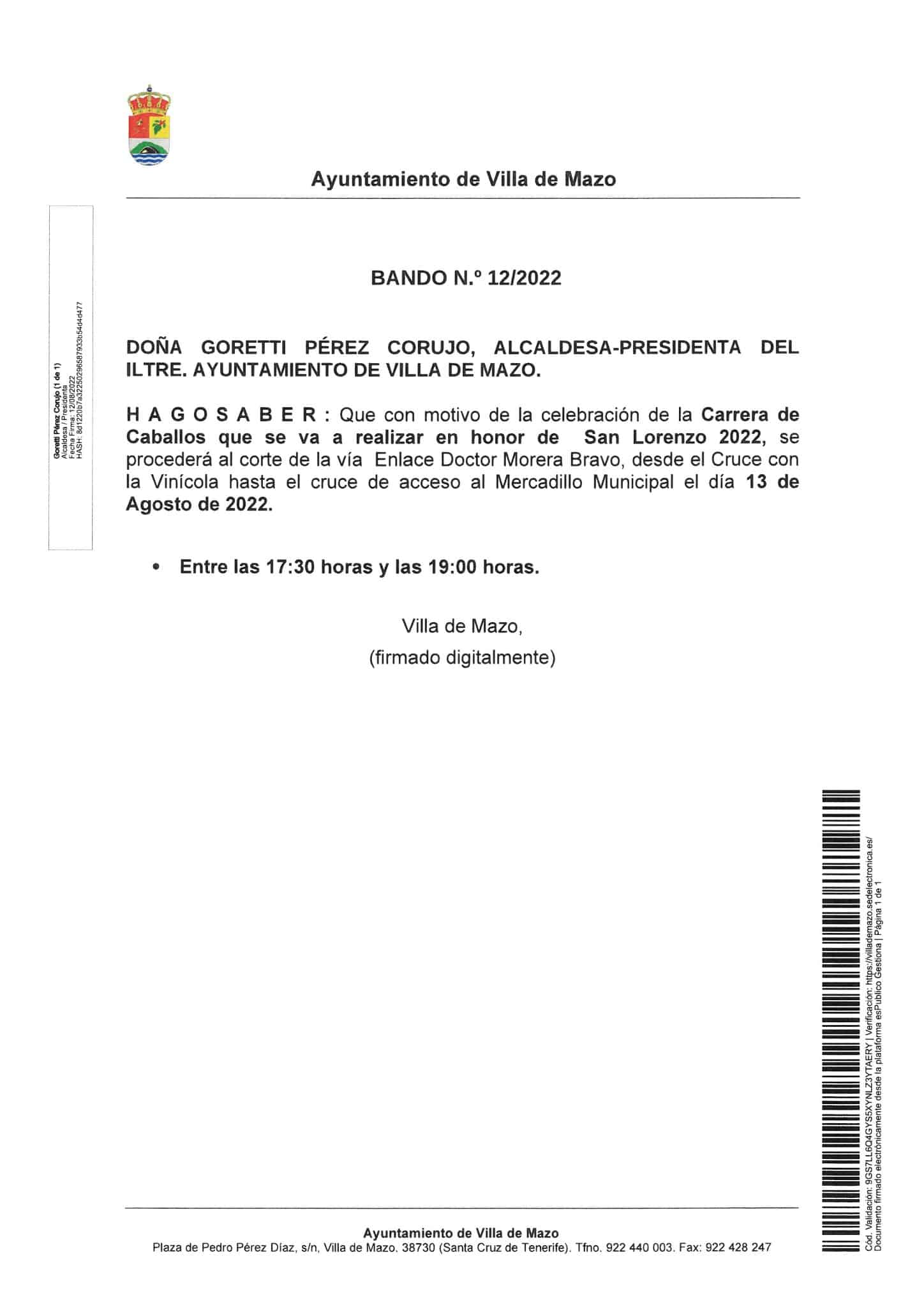 CORTE DE VÍA con motivo de la celebración de la Carrera de Caballos en honor a San Lorenzo 2022.