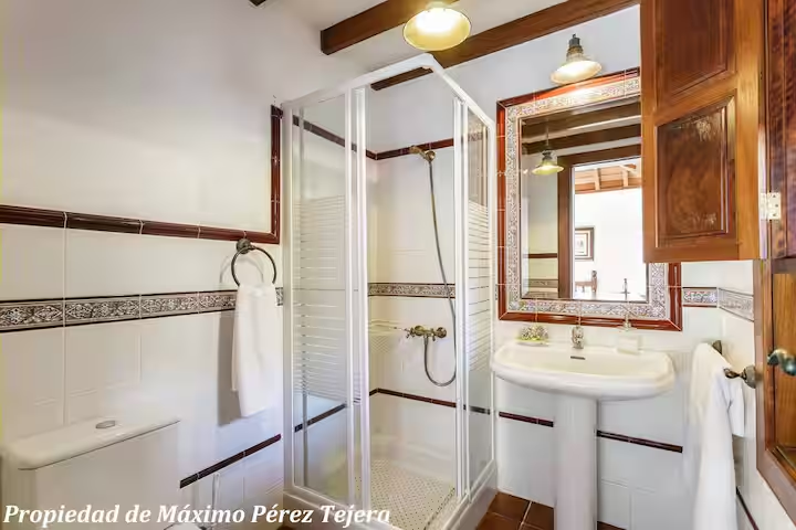 Cuenta con una piscina privada de 73 m2 y de una barbacoa para comidas especiales. La casa dispone de tres dormitorios; uno de ellos de matrimonio, tres baños, cocina, salón, y una pequeña habitación para la lavadora y utensilios.
