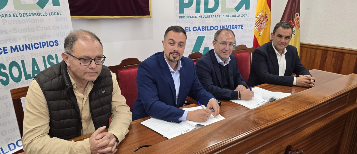 El Cabildo de La Palma destina 2,4 millones de euros con cargo del Plan de Desarrollo Local (PIDL) a la mejora de infraestructuras en Villa de Mazo. El presidente insular, Sergio Rodríguez, y el alcalde de Villa de Mazo, Idafe Hernández, han suscrito el convenio de colaboración de este programa que dotará al municipio de más de 600.000 euros al año para la puesta en marcha de proyectos clave para la localidad. Con la rúbrica con este municipio, los 14 de la Isla ya han formalizado su adhesión al PIDL.