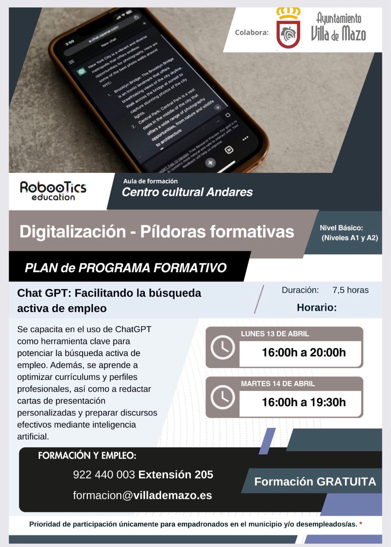 Este programa está diseñado para enseñar a los participantes a utilizar la inteligencia artificial como una herramienta clave para mejorar su empleabilidad