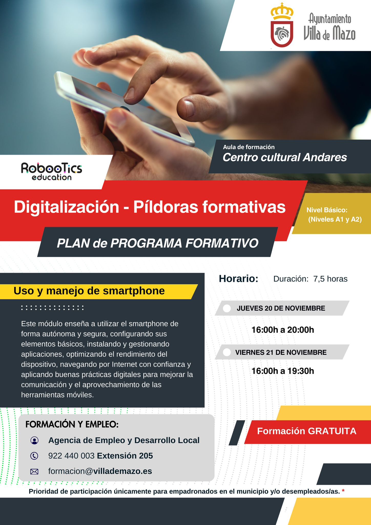 El Ayuntamiento de Villa de Mazo, en colaboración con la Asociación Compartiendo Metas y el Gobierno de Canarias, pone en marcha sesiones gratuitas de alfabetización digital para personas mayores de 65 años. 👉 Aprenderás a: ✅ Usar correctamente tu smartphone ✅ Manejar WhatsApp y redes sociales ✅ Evitar estafas por internet ✅ Gestionar trámites telemáticos […]