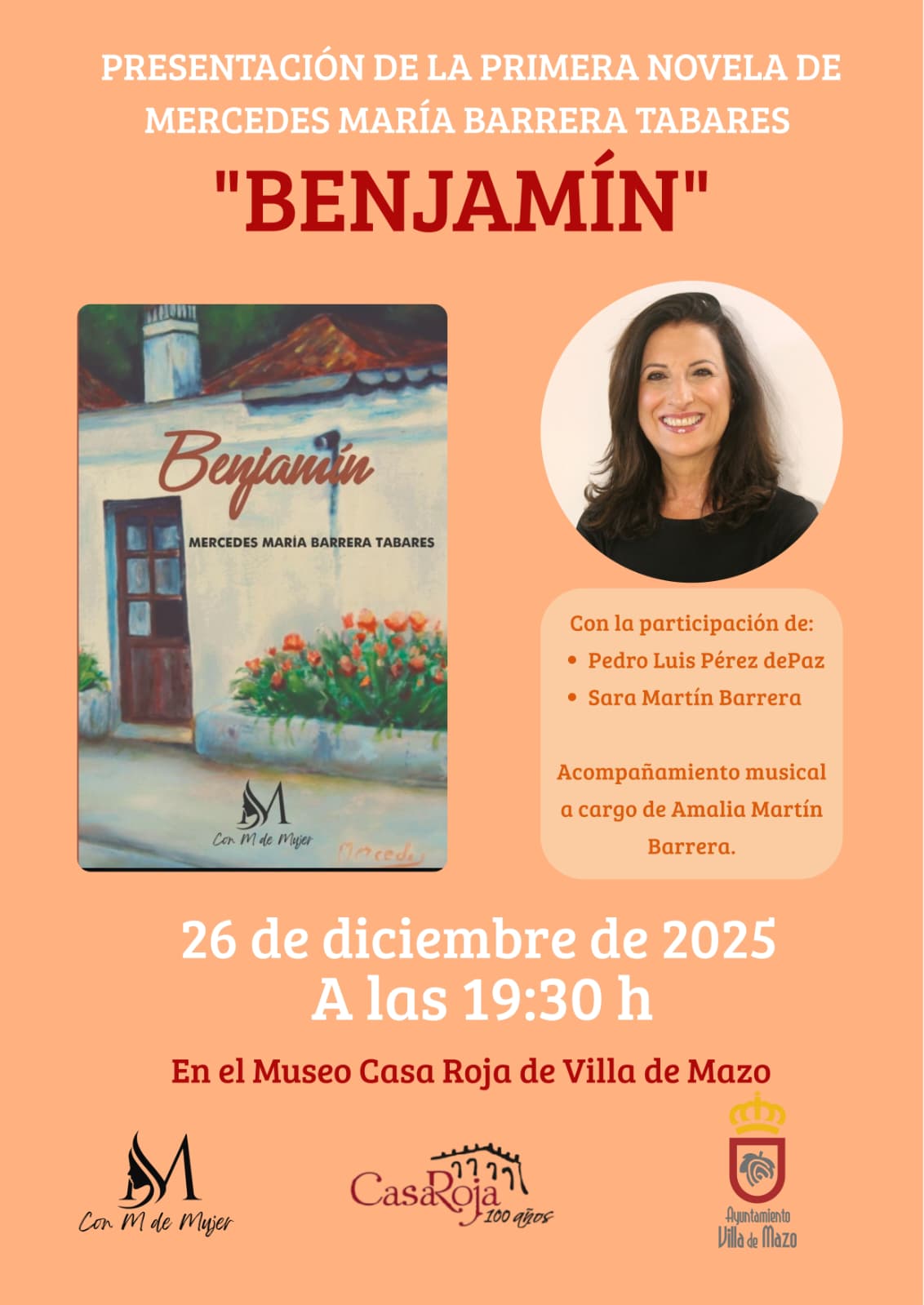presentación de la primera novela de Mercedes María Barrera Tabares, titulada "Benjamín". El evento tendrá lugar el 26 de diciembre de 2025 a las 19:30 h en el Museo Casa Roja de Villa de Mazo. Contará con la participación de: Pedro Luis Pérez de Paz Sara Martín Barrera El acompañamiento musical estará a cargo de […]