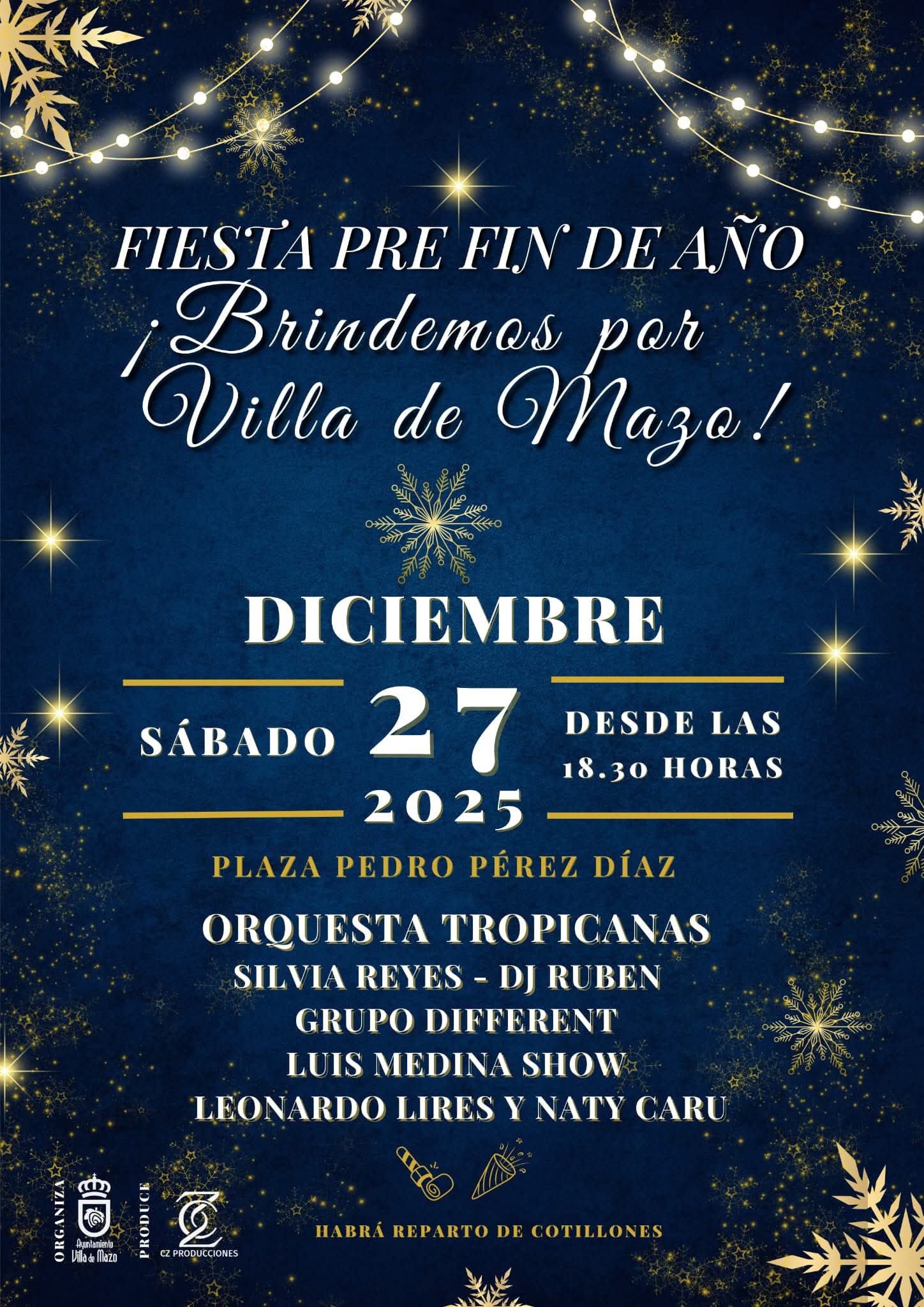 Te invitamos a celebrar y brindar juntos por Villa de Mazo en una gran fiesta para despedir el año como se merece. 🎶 Actuaciones musicales: * Orquesta Tropicanas * Silvia Reyes * DJ Rubén * Grupo Different * Luis Medina Show * Leonardo Lires y Naty Caru 💃🏽🎉 Habrá cotillón para celebrar el último sábado […]