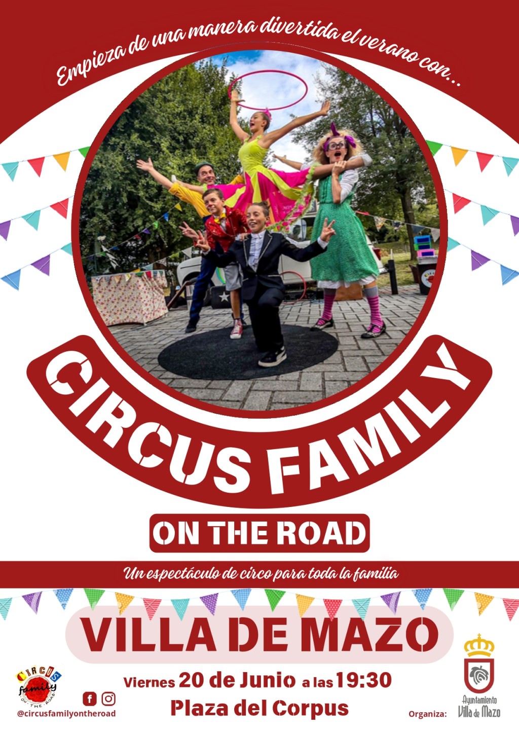 Un espectáculo donde se combina magia, circo, clown, malabares y música en directo junto a una familia de artistas aventureros, en el Recinto Festivo de la Plaza de Corpus.