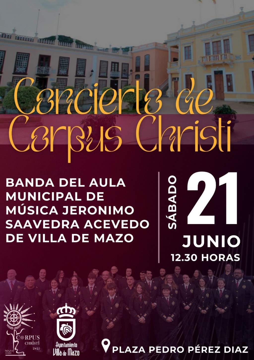 La Banda del Aula Municipal de Música Jerónimo Saavedra Acevedo de Villa de Mazo ofrecerá un concierto con motivo de la celebración de Corpus Christi. 📅 Fecha: Sábado, 21 de junio🕐 Hora: 12:30 horas📍 Lugar: Plaza Pedro Pérez Díaz (Villa de Mazo) Organizan: Ayuntamiento de Villa de Mazo. Corpus Christi Villa de Mazo 2025. ¡Te […]