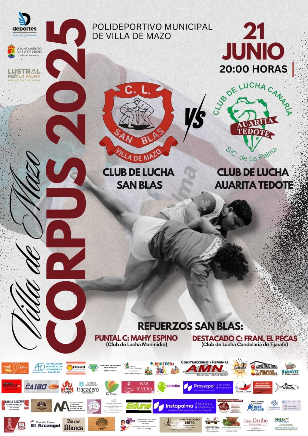 📅 Fecha: 21 de junio🕗 Hora: 20:00 horas📍 Lugar: Polideportivo Municipal de Villa de Mazo Programación: 🔸 Desafío “Raúl León”💥 Daniela Batista vs. Infante (Tindaya) 🔸 Gran Encuentro de Lucha Canaria🤼‍♂️ C.L. San Blas (Villa de Mazo) 🆚 C.L. Auarita Tedote (Santa Cruz de La Palma) Refuerzos del C.L. San Blas: Puntal C: Mahy Espino […]
