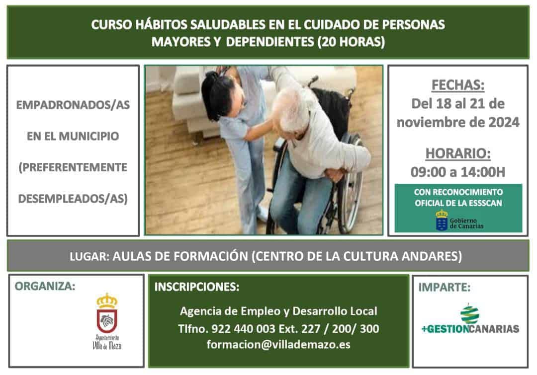 Curso de 20 horas con reconocimiento oficial de la ESSSCAN, preferentemente para desempleados/as empadronados/as en Villa de Mazo.