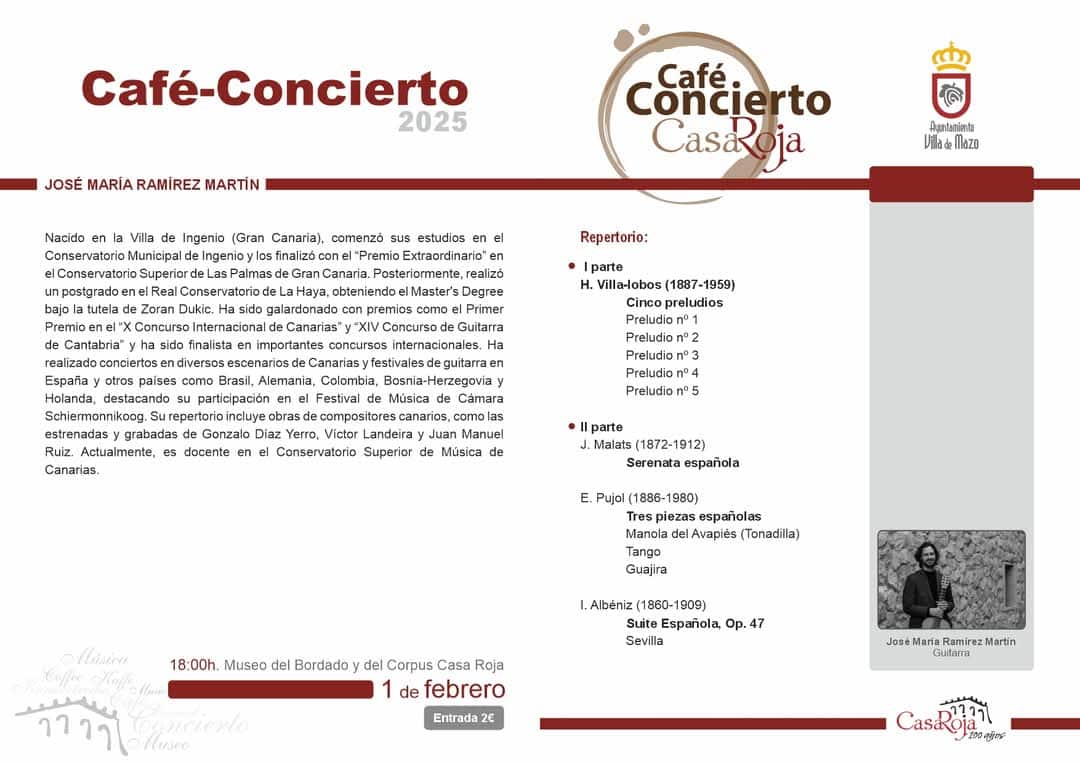 Café-Concierto con José María Ramírez Martín. A las 18 horas en el Museo del Bordado y del Corpues Casa Roja