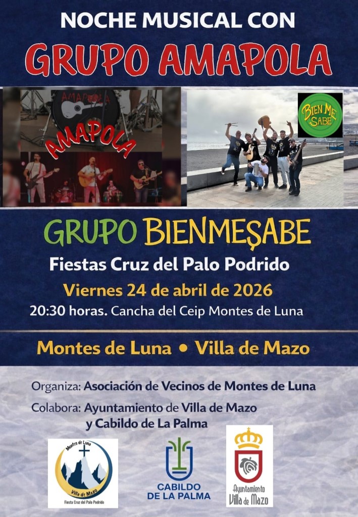 Ven a compartir con los vecinos de Villa de Mazo una velada llena de ritmo y alegría. Un evento organizado por la Asociación de Vecinos de Montes de Luna para empezar el fin de semana de fiestas por todo lo alto.