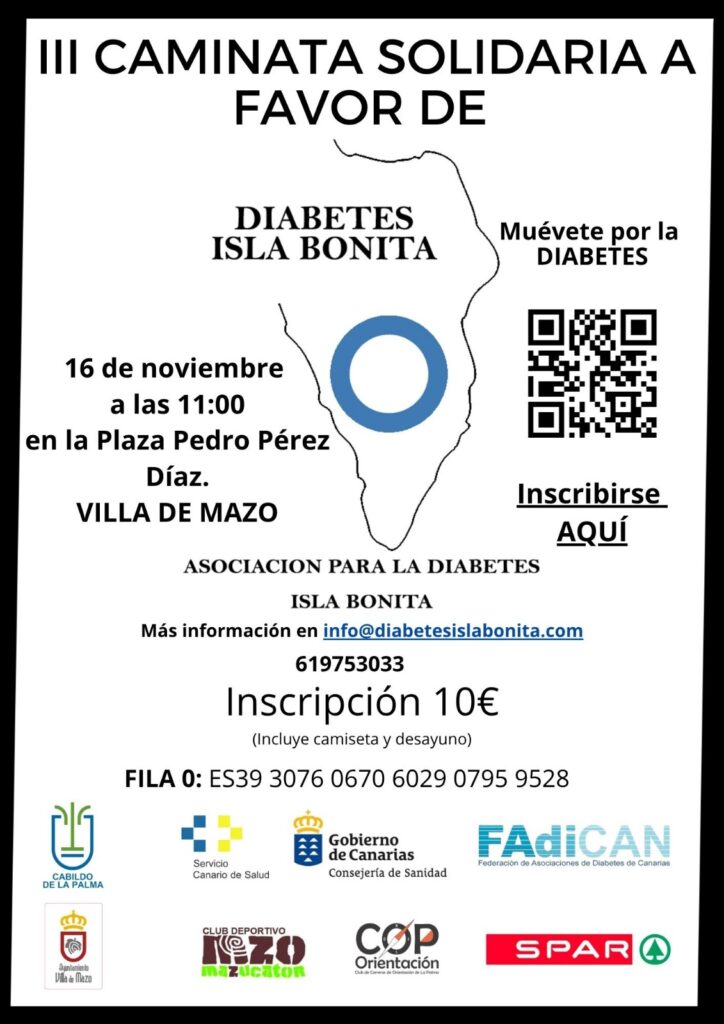 El Ayuntamiento de Villa de Mazo, junto a la Asociación para la Diabetes Isla Bonita, presenta oficialmente las II Jornadas de Diabetes Isla Bonita y la III Caminata Solidaria a favor de la Diabetes, que tendrán lugar los días 14, 15 y 16 de noviembre en nuestro municipio.