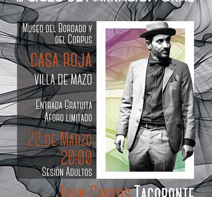 El actor y narrador oral Juan Carlos Tacoronte protagoniza una nueva cita del ciclo La Solera Cuenta, impulsado por el Ayuntamiento de Villa de Mazo y la asociación La Solera. Esta nueva entrega del ciclo de narración oral, dirigida al público adulto, tendrá lugar el viernes 22 de marzo, en el Museo Casa Roja del municipio, a las 20:00 horas.