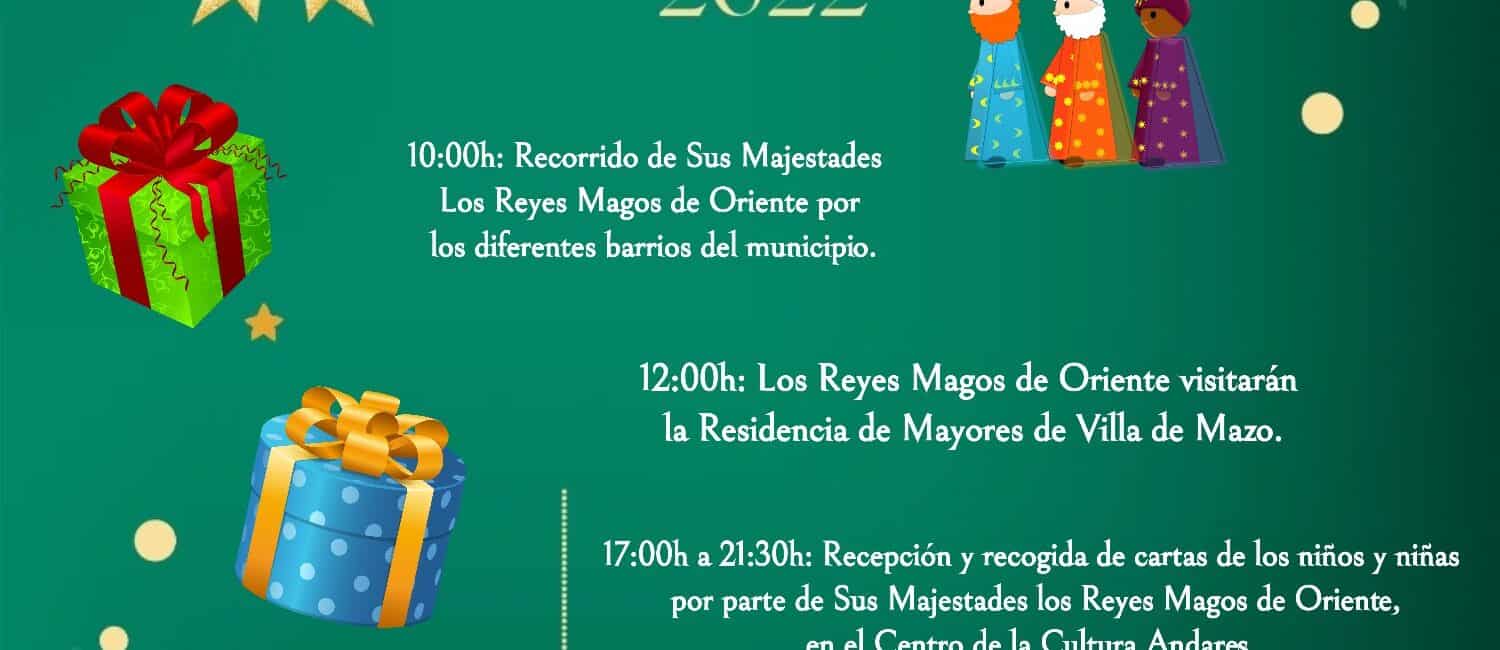 El Ayuntamiento de Villa de Mazo cancela la Cabalgata y el Auto Sacramental de los Reyes Magos de este año debido al aumento de casos por COVID-19. En su lugar, informa que, a partir de las 10:00 horas, Sus Majestades del Oriente recorrerán los barrios del municipio.