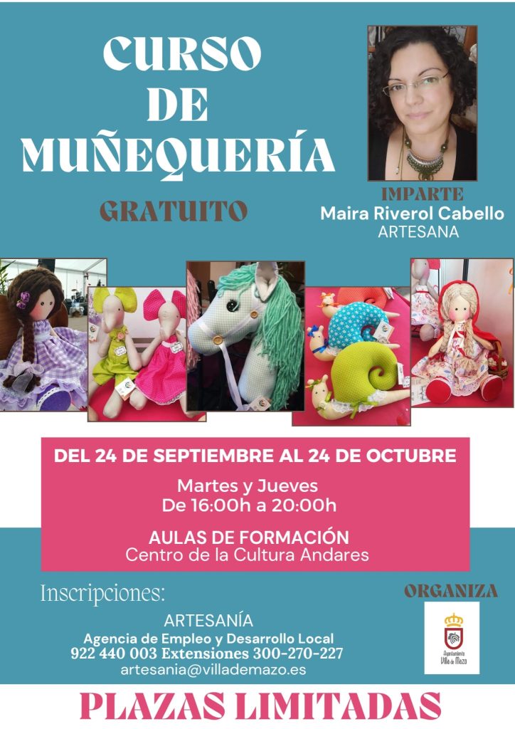 El Ayuntamiento de Villa de Mazo pone en marcha un curso de oficios artesanos gratuito de muñequería. Esta iniciativa forma parte del compromiso del Consistorio con el desarrollo de las habilidades artesanales y el fomento del autoempleo en la comunidad.