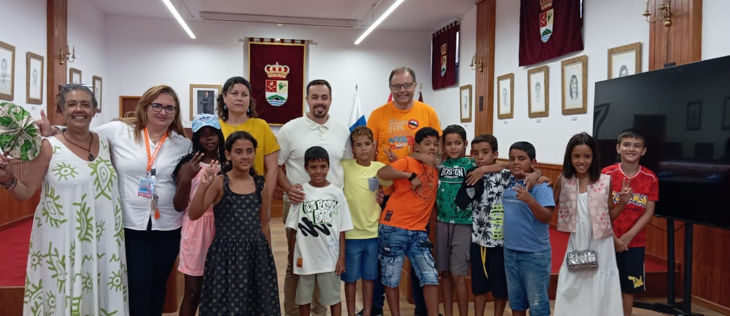 El Ayuntamiento de Villa de Mazo recibe a un grupo de niños y niñas que participan en el proyecto ‘Vacaciones en Paz’, organizado por la Asociación de Amistad con el Pueblo Saharaui. Los jóvenes, procedentes de campamentos de refugiados saharauis situados en la provincia argelina de Tinduf, pasarán los próximos meses en la región disfrutando de la época del verano en un entorno seguro.